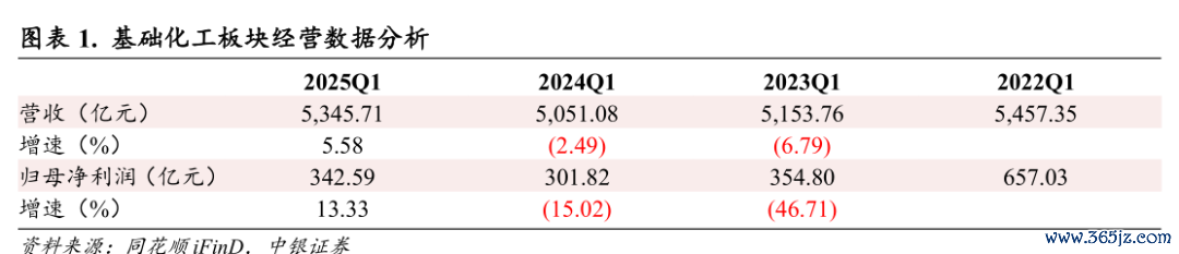 基础化工:2025年一季度营收、