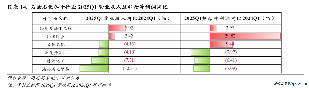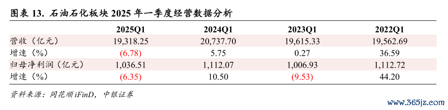 石油石化:2025Q1营业收入及盈利能力